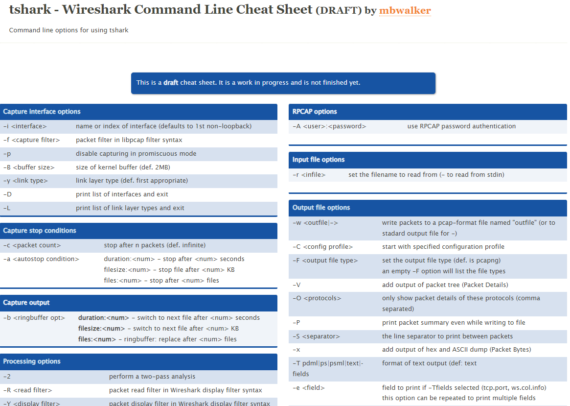 Tshark Cheat Sheet - These tshark filter examples will let. It's a network protocol analyzer. It is a part of the wireshark package and uses the same packet. Instantly share code, notes, and snippets.