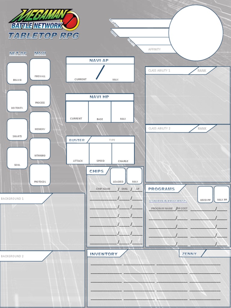 MMBN TTRPG Character Sheet Fillable PDF