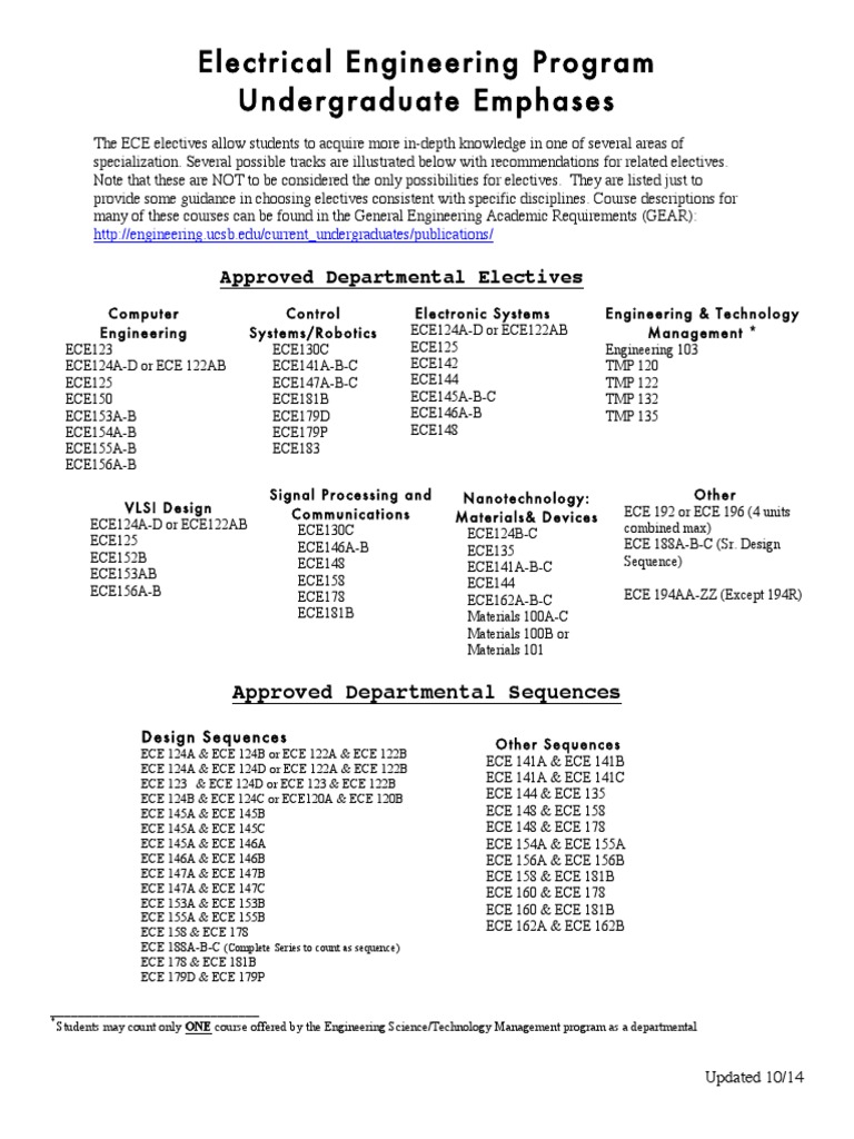 Ucsb Ee Senior Elective Sheet PDF Electronic Engineering