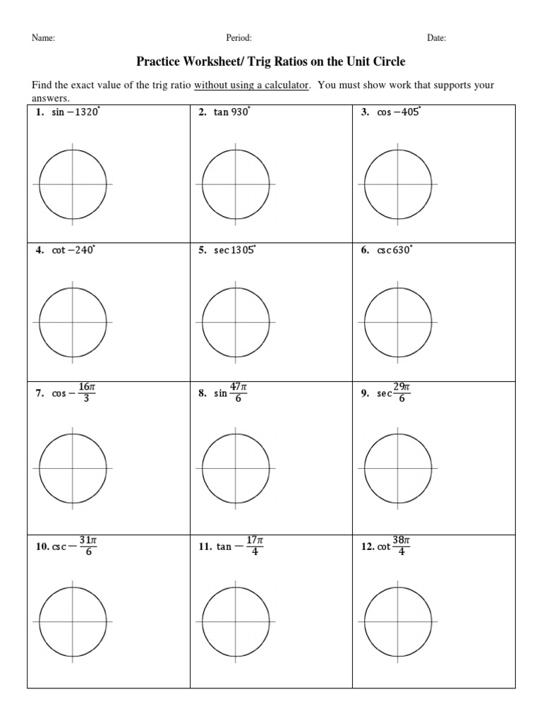 Unit Circle Worksheet