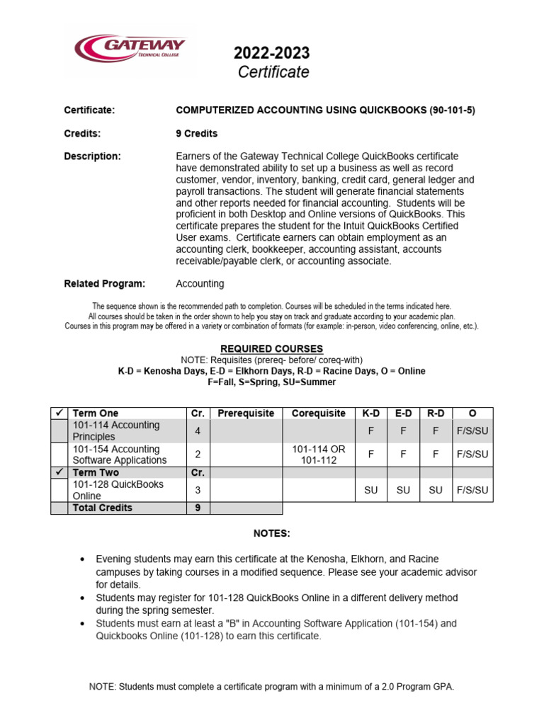 901015 Computerized Accounting Using QuickBooks Certificate 20222023