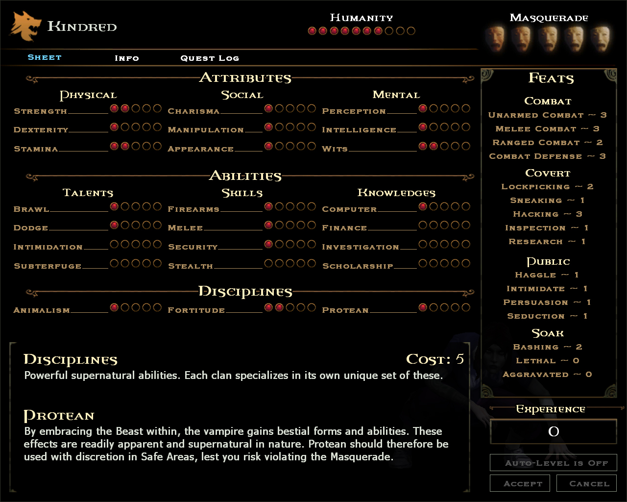 Character Sheet Vampire The Masquerade Bloodlines Wiki Fandom