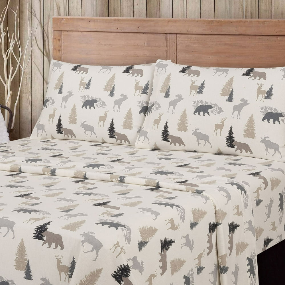 Mainstays Flannel Sheet Set, Grey Wilderness, Queen