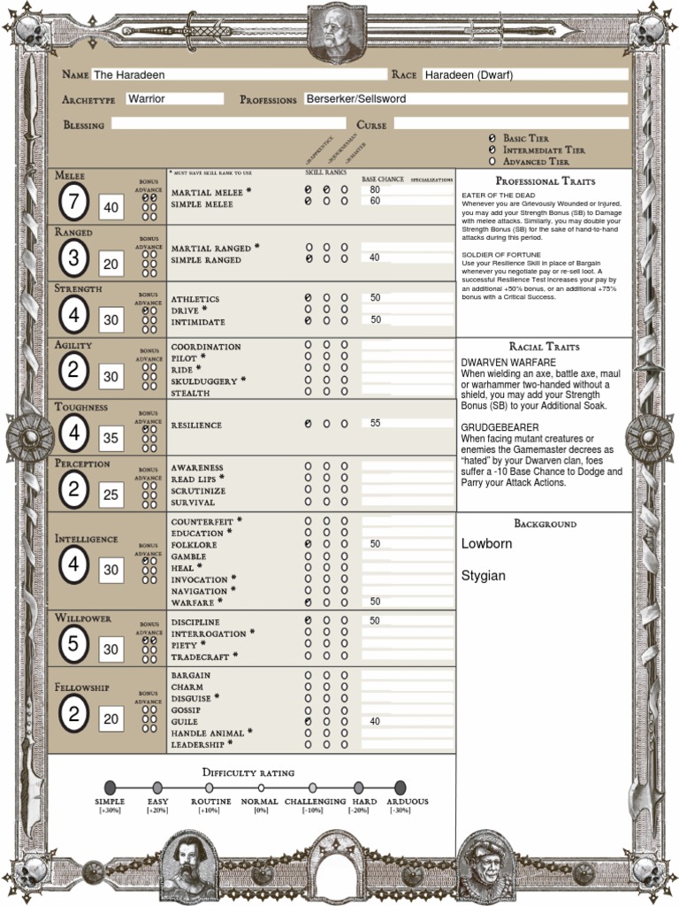 Wfrp 2nd Edition Form Fillable Character Sheet Printable Forms Free