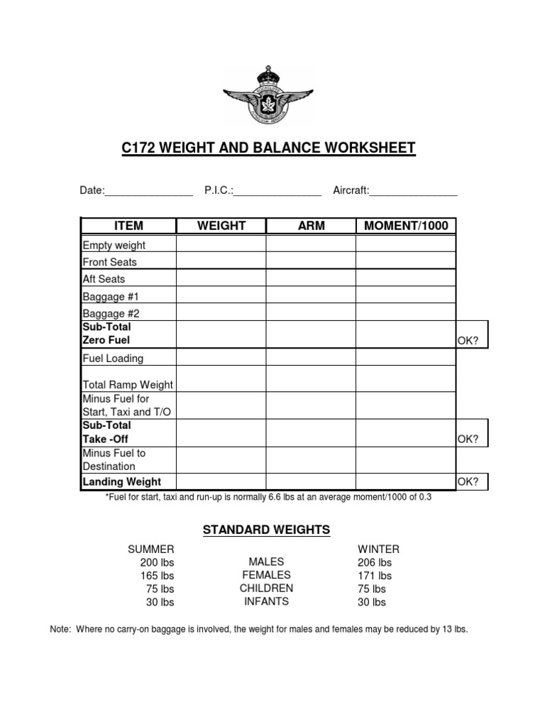 Weight And Balance Sheet Cessna 172 Printable Templates Free