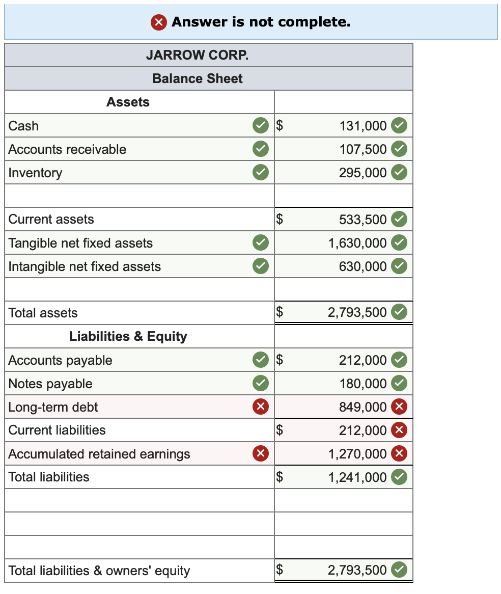 Solved Prepare a 2020 balance sheet for Jarrow Corp. based