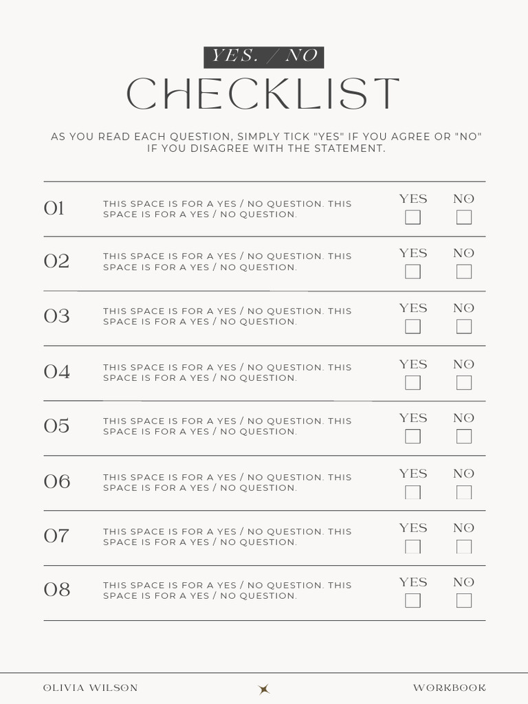 Cream Coach Yes No Checklist Worksheet A4 Document PDF
