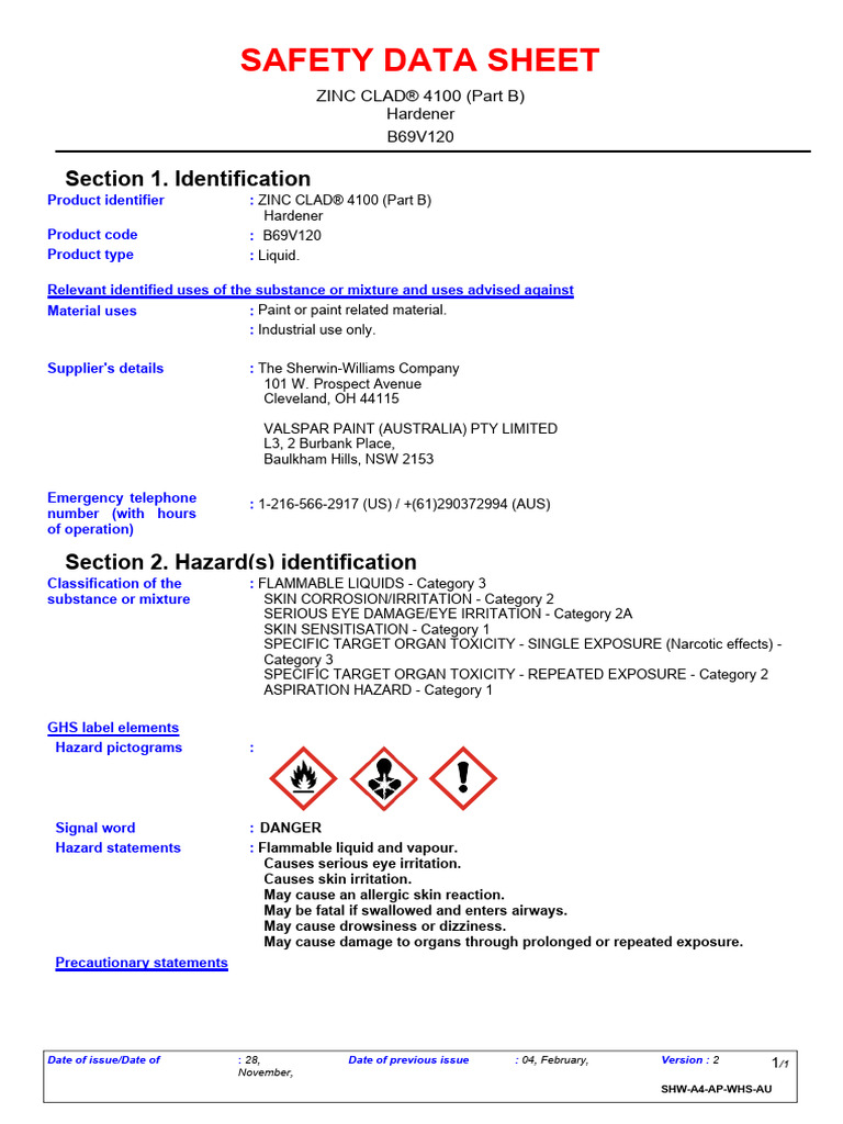 2020 05 Zincclad4100 Part B Sds PM Anz Sherwin Williams PDF